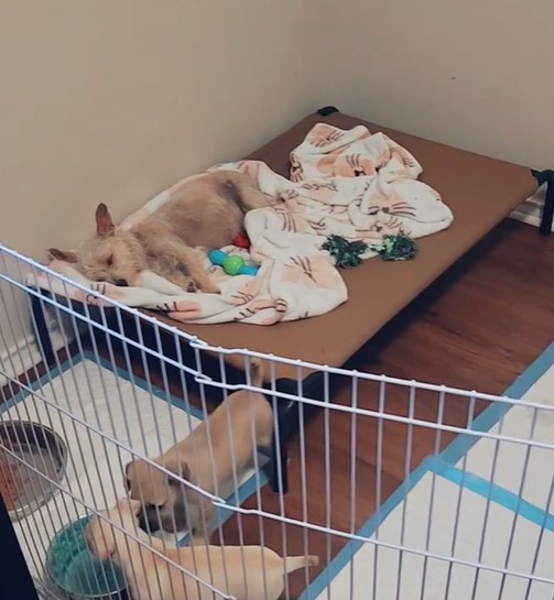La reunión fue nada menos que emotiva. La mamá perra, llamada April por Jessica, era rebosante de alegría en el momento en que vio a su cachorro perdido. Toda la tristeza desapareció de su rostro, reemplazada por pura felicidad. La pequeña April saltó de su cama, sus orejas se animaron y sus ojos se iluminaron de alegría.