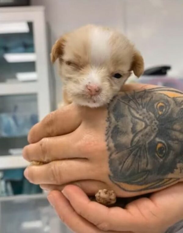In the vast landscapes of Texas, a heartbreaking scene unfolds as a tiny newborn puppy faces the harsh reality of being rejected by her mother. Named Shramp by her savior, this little soul was discovered alone and vulnerable, with her life hanging by a thread. The rescuer, a kind-hearted woman, found Shramp not only malnourished but also suffering from several injuries and a troubling eye condition suspected to be an ulcer. The fragility of her condition could break any animal lover’s heart, yet it marks the beginning of a remarkable journey of courage and resilience.